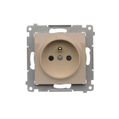Gniazdo wtyczkowe pojedyncze bez uziemienia z przesłonami torów prądowych, (moduł), 16A, 250V, zaciski śrubowe, złoty mat, metalizowany