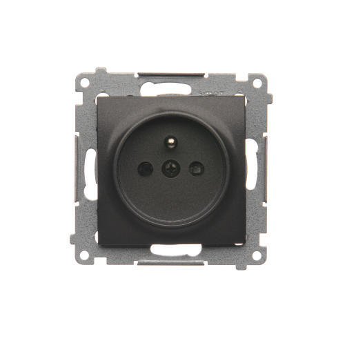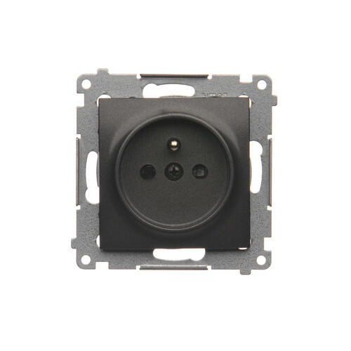 Gniazdo wtyczkowe pojedyncze z uziemieniem z przesłonami torów prądowych, (moduł), 16A, 250V, zaciski śrubowe, antracyt, metalizowany