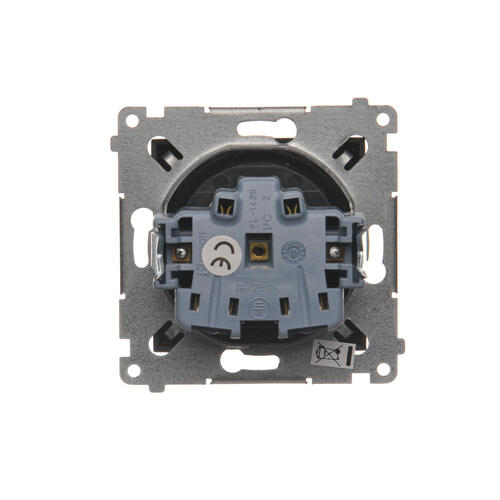 Gniazdo wtyczkowe pojedyncze z uziemieniem z przesłonami torów prądowych, (moduł), 16A, 250V, zaciski śrubowe, antracyt, metalizowany
