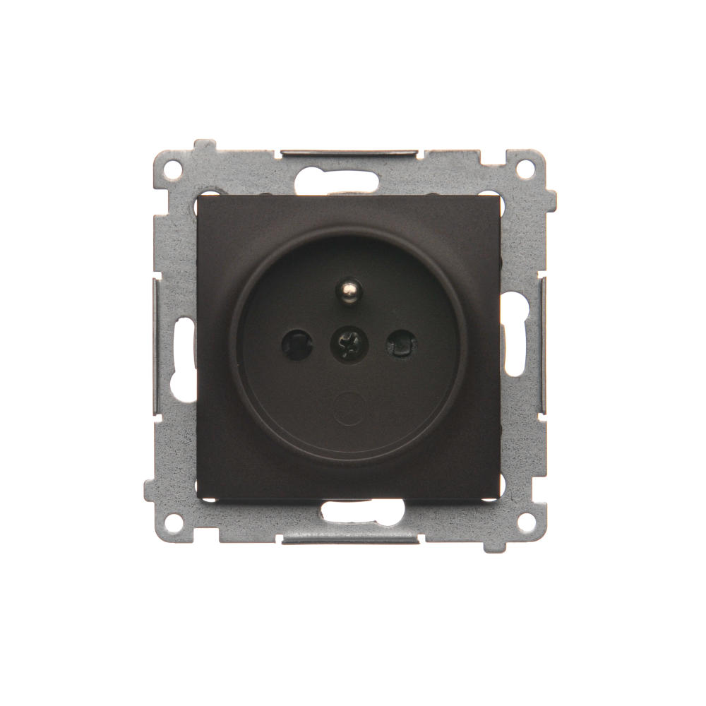Gniazdo wtyczkowe pojedyncze bez uziemienia z przesłonami torów prądowych, (moduł), 16A, 250V, zaciski śrubowe, brąz mat, metalizowany