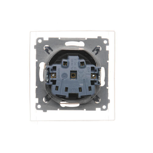 Gniazdo wtyczkowe pojedyncze z uziemieniem z przesłonami torów prądowych, (moduł), 16A, 250V, zaciski śrubowe, biały
