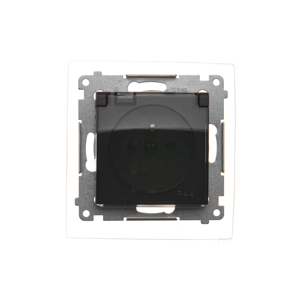 Gniazdo wtyczkowe pojedyncze do wersji IP44 - z uszczelką do ramek Premium - klapka w kolorze transparentnym, (moduł), 16A, 250V, zaciski śrubowe, brąz mat, metalizowany