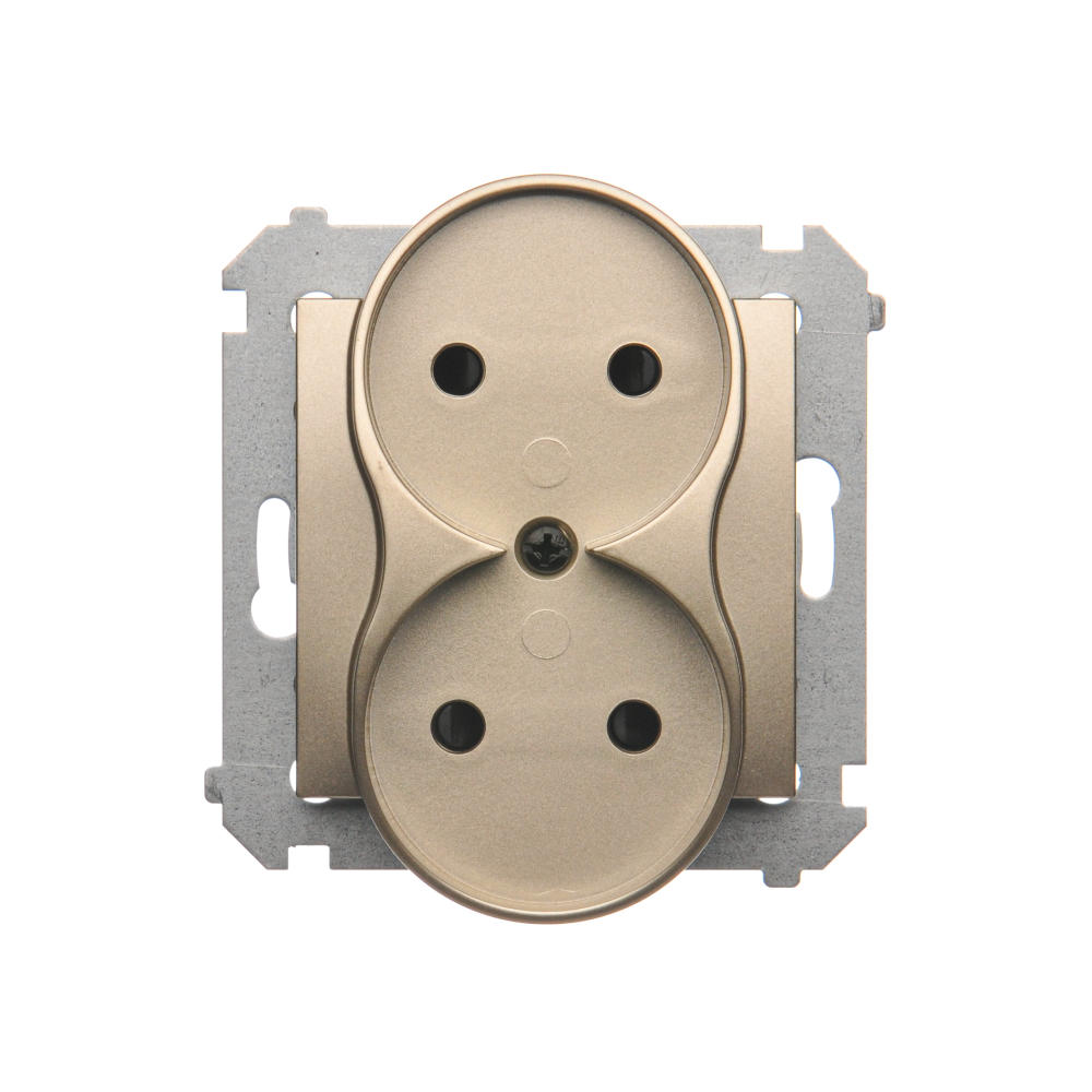 Gniazdo wtyczkowe podwójne z uziemieniem z funkcją niezmienności faz, (kompletny produkt), 16A, 250V, zaciski śrubowe, złoty mat, metalizowany