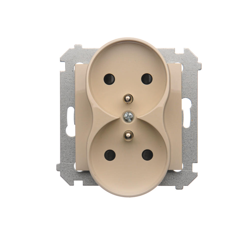 Gniazdo wtyczkowe podwójne z uziemieniem z przesłonami - do Ramek NATURE, (moduł), 16A, 250V, zaciski śrubowe, kremowy