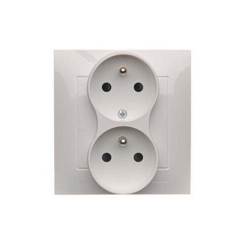 Gniazdo wtyczkowe podwójne z uziemieniem z przesłonami - do Ramek NATURE, (moduł), 16A, 250V, zaciski śrubowe, biały