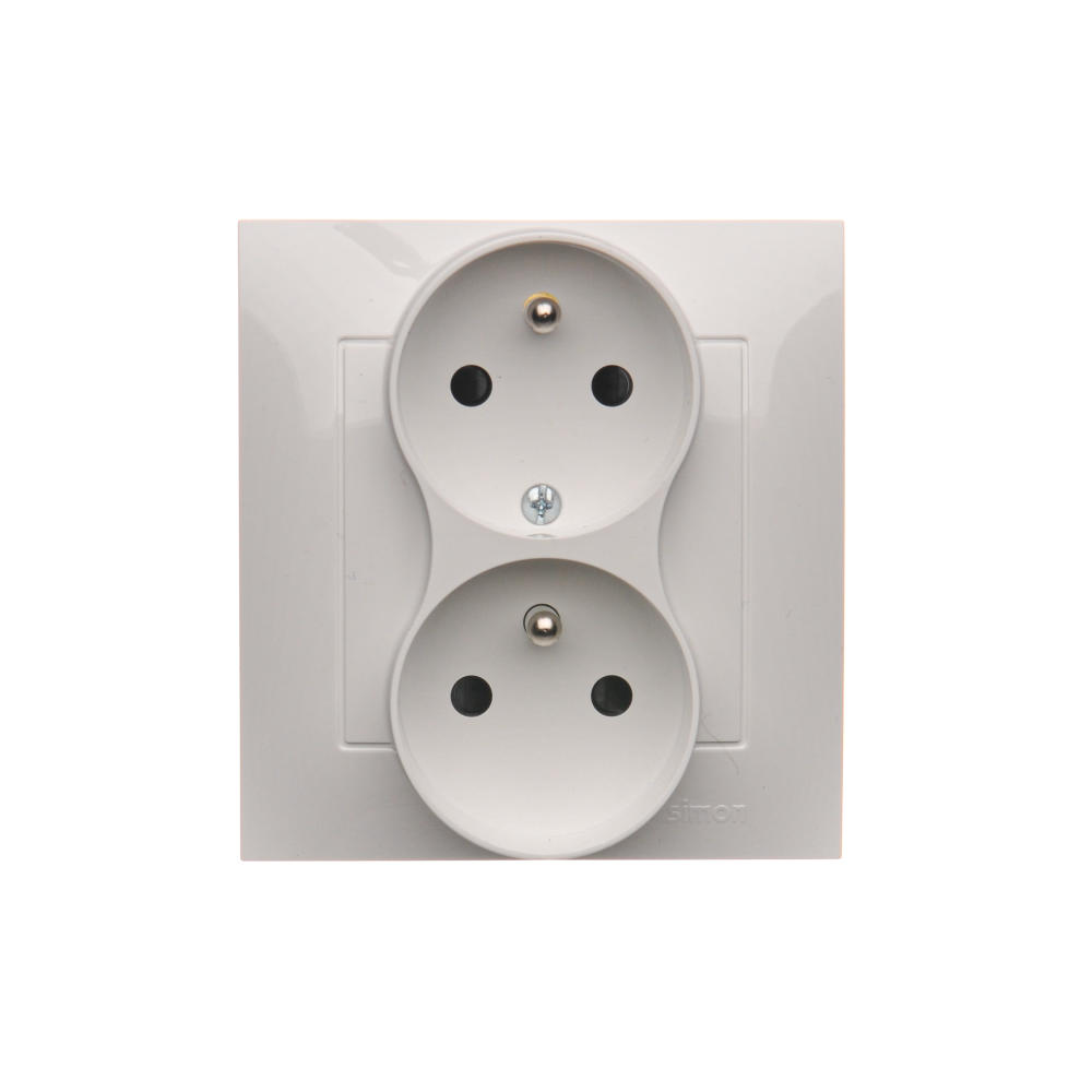 Gniazdo wtyczkowe podwójne z uziemieniem z funkcją niezmienności faz, (kompletny produkt), 16A, 250V, zaciski śrubowe, biały