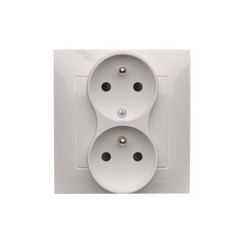Gniazdo wtyczkowe podwójne z uziemieniem z funkcją niezmienności faz, (kompletny produkt), 16A, 250V, zaciski śrubowe, kremowy
