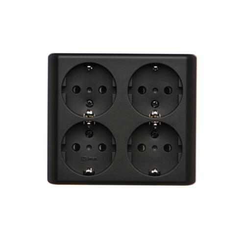 Gniazdo wtyczkowe poczwórne z uziemieniem typu Schuko z przesłonami torów prądowych - wersja skandynawska, (kompletny produkt), 16A, 250V, zaciski śrubowe, czarny mat