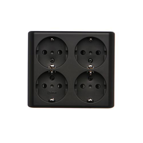 Gniazdo wtyczkowe poczwórne z uziemieniem typu Schuko z przesłonami torów prądowych - wersja skandynawska, (kompletny produkt), 16A, 250V, szybkozłącza, czarny mat