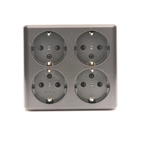 Gniazdo wtyczkowe poczwórne z uziemieniem typu Schuko z przesłonami torów prądowych - wersja skandynawska, (kompletny produkt), 16A, 250V, zaciski śrubowe, antracyt, metalizowany