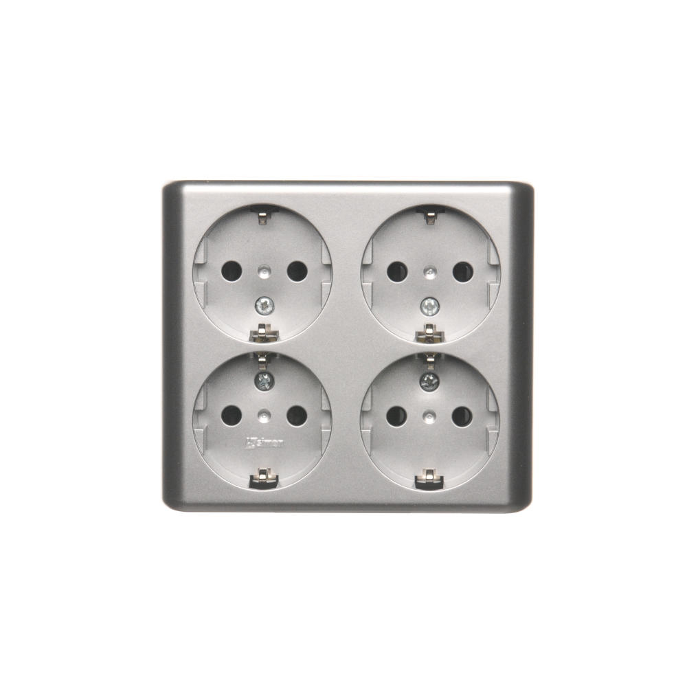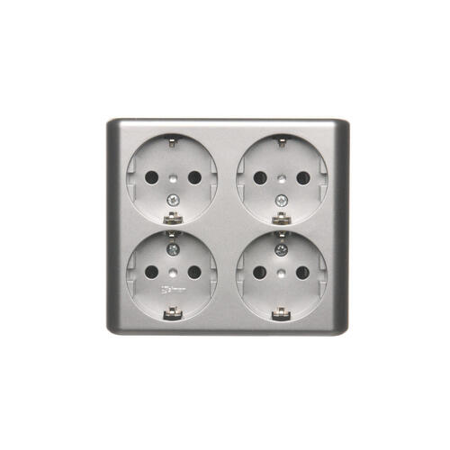 Gniazdo wtyczkowe poczwórne z uziemieniem typu Schuko z przesłonami torów prądowych - wersja skandynawska, (kompletny produkt), 16A, 250V, zaciski śrubowe, srebrny mat, metalizowany