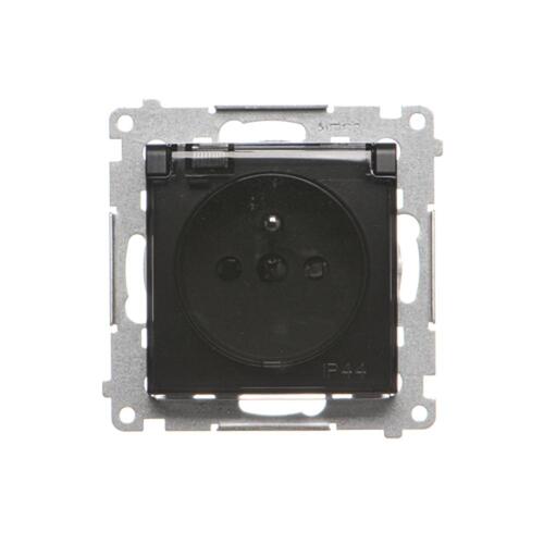 Gniazdo wtyczkowe pojedyncze do wersji IP44 - bez uszczelki - klapka w kolorze pokrywy, (moduł), 16A, 250V, zaciski śrubowe, czarny mat