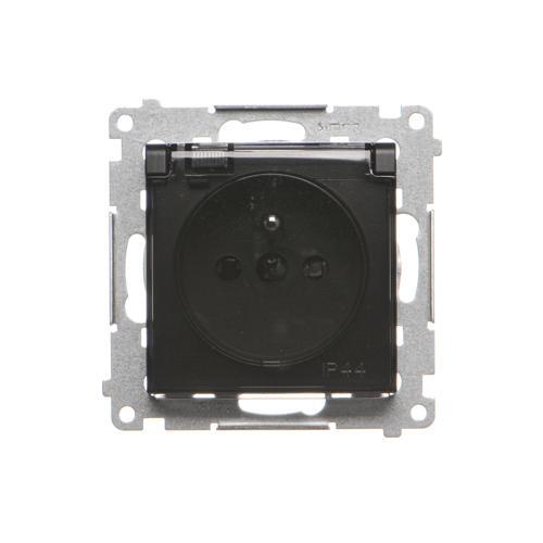 Gniazdo wtyczkowe pojedyncze do wersji IP44 - z uszczelką do ramek Premium - klapka w kolorze pokrywy, (moduł), 16A, 250V, zaciski śrubowe, czarny mat
