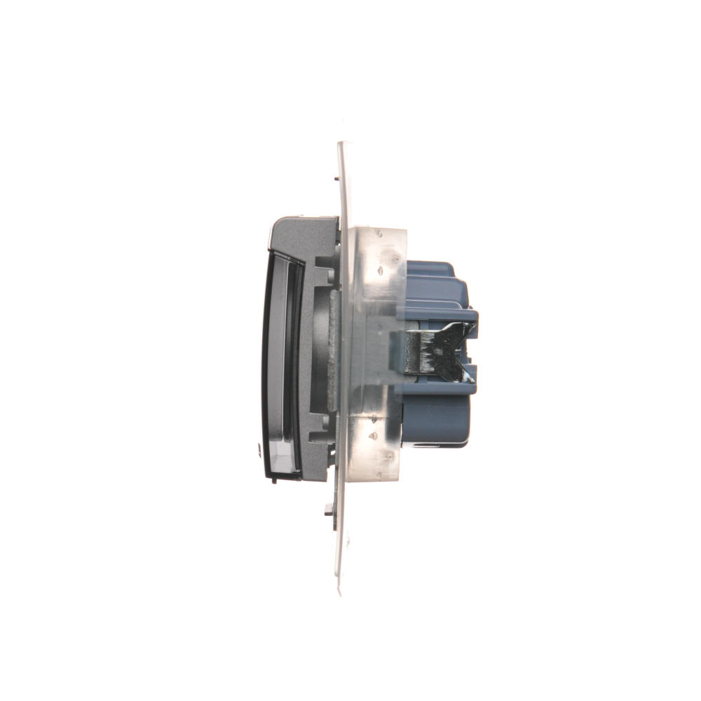 Gniazdo wtyczkowe pojedyncze do wersji IP44 - bez uszczelki - klapka transparentna, (moduł), 16A, 250V, zaciski śrubowe, antracyt, metalizowany