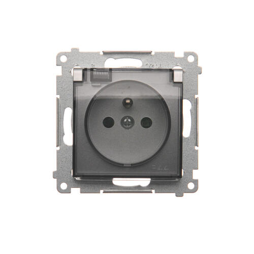 Gniazdo wtyczkowe pojedyncze do wersji IP44 - z uszczelką do ramek Premium - klapka w kolorze transparentnym, (moduł), 16A, 250V, zaciski śrubowe, antracyt, metalizowany