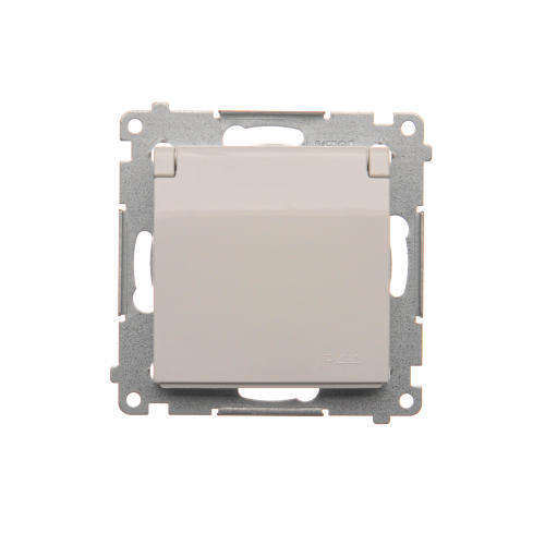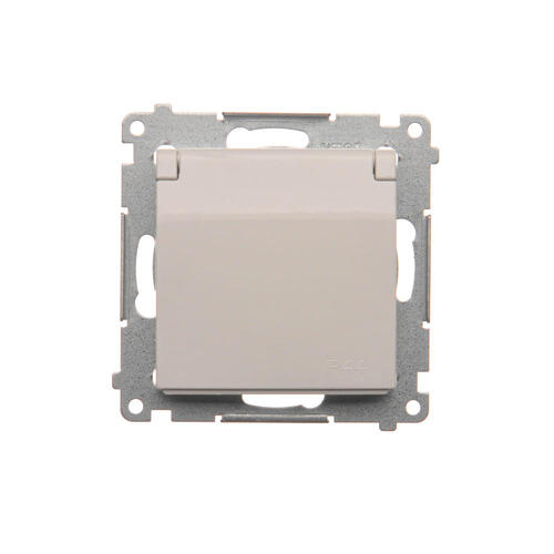Gniazdo wtyczkowe pojedyncze do wersji IP44 - z uszczelką do ramek Premium - klapka w kolorze pokrywy, (moduł), 16A, 250V, zaciski śrubowe, kremowy