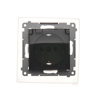 Gniazdo wtyczkowe pojedyncze do wersji IP44 z uziemieniem typu Schuko z przesłonami torów prądowych - z uszczelką ramki - klapka w kolorze pokrywy, (moduł), 16A, 250V, zaciski śrubowe, kremowy