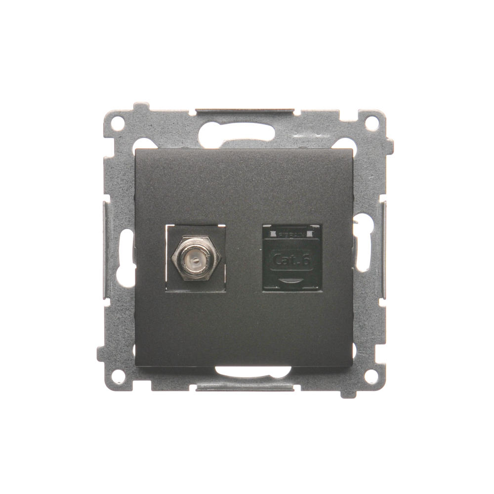Gniazdo antenowe typu „F” + komputerowe RJ45 kat.6, antracyt, metalizowany
