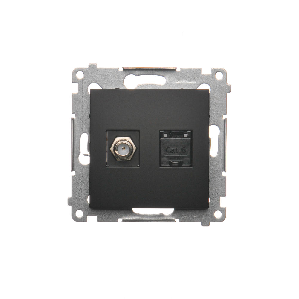Gniazdo antenowe typu „F” + komputerowe RJ45 kat.6, czarny mat