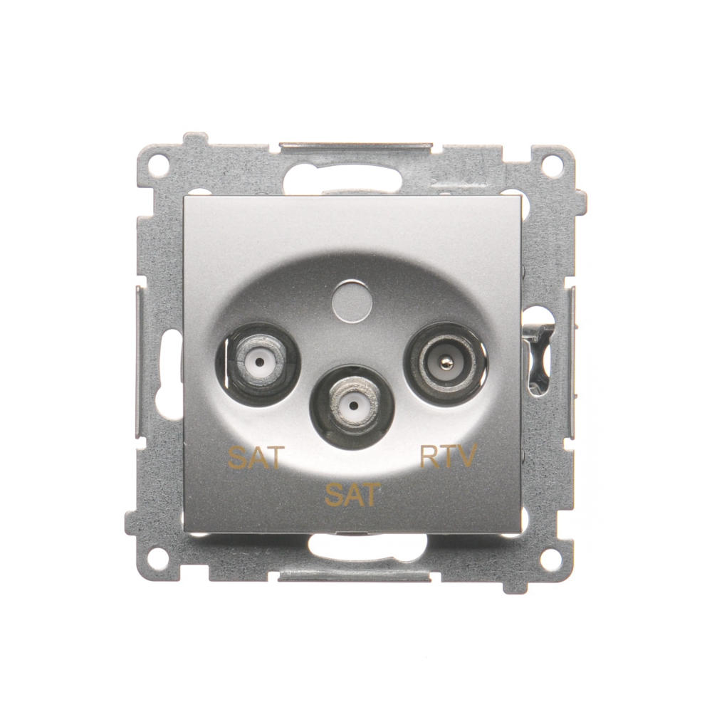 Gniazdo antenowe SAT-SAT-RTV satelitarne podwójne, tłum.: 1dB, srebrny mat, metalizowany