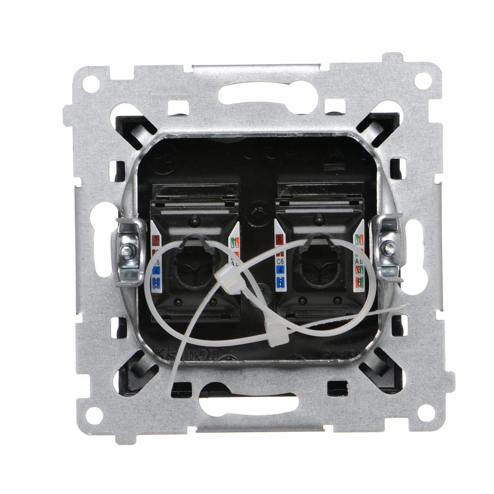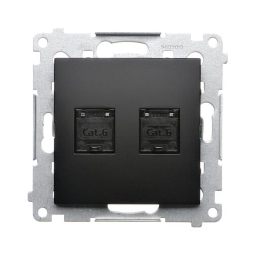 Gniazdo komputerowe podwójne RJ45 kategoria 6, z przesłoną przeciwkurzową, (moduł), czarny mat