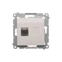 Gniazdo komputerowe pojedyncze ekranowane RJ45 kategoria 6, z przesłoną przeciwkurzową, (moduł), kremowy