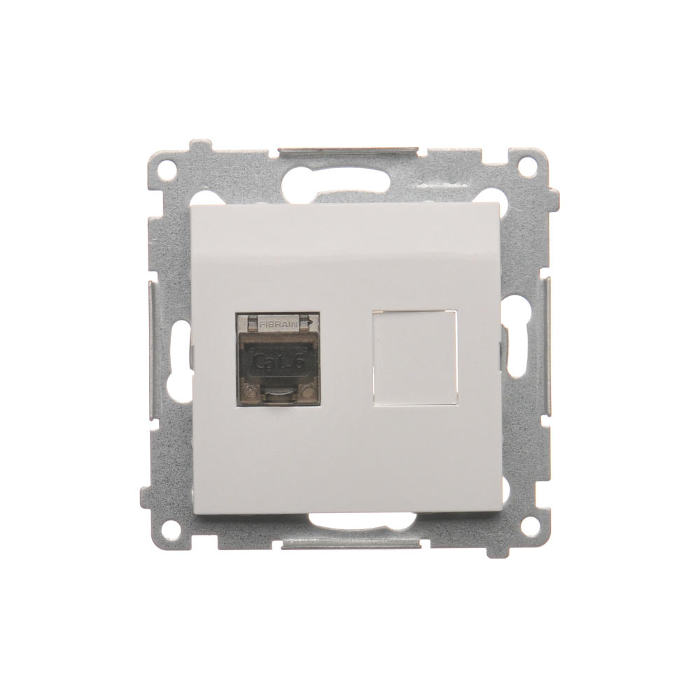 Gniazdo komputerowe pojedyncze ekranowane RJ45 kategoria 6, z przesłoną przeciwkurzową, (moduł), biały