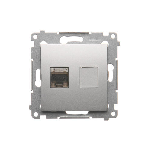 Gniazdo komputerowe pojedyncze ekranowane RJ45 kategoria 6, z przesłoną przeciwkurzową, (moduł), srebrny mat, metalizowany