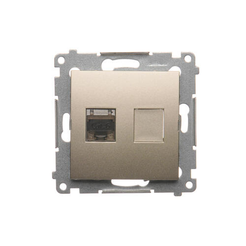 Gniazdo komputerowe pojedyncze ekranowane RJ45 kategoria 6, z przesłoną przeciwkurzową, (moduł), złoty mat, metalizowany