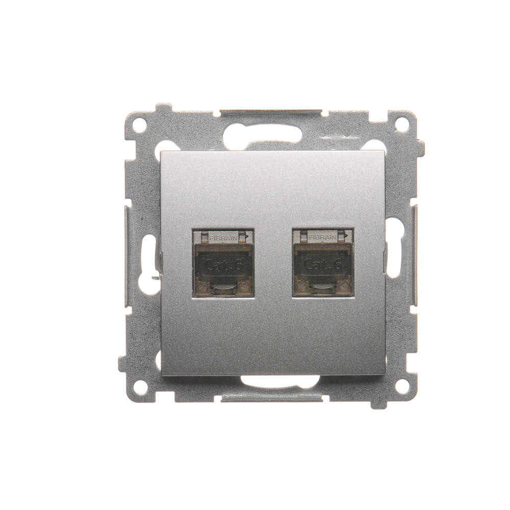 Gniazdo komputerowe podwójne ekranowane RJ45 kategoria 6, z przesłoną przeciwkurzową, (moduł), srebrny mat, metalizowany