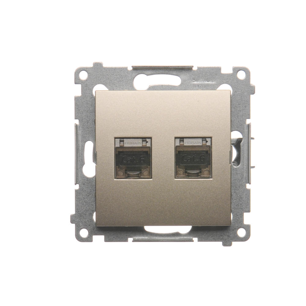 Gniazdo komputerowe podwójne ekranowane RJ45 kategoria 6, z przesłoną przeciwkurzową, (moduł), złoty mat, metalizowany