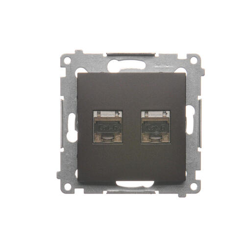 Gniazdo komputerowe podwójne ekranowane RJ45 kategoria 6, z przesłoną przeciwkurzową, (moduł), brąz mat, metalizowany