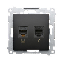 Gniazdo komputerowe RJ45 kategoria 5e + telefoniczne RJ12, (moduł), czarny mat