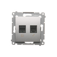 Gniazdo komputerowe RJ45 kategoria 5e + telefoniczne RJ12, (moduł), srebrny mat, metalizowany