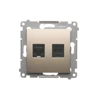 Gniazdo komputerowe RJ45 kategoria 5e + telefoniczne RJ12, (moduł), złoty mat, metalizowany