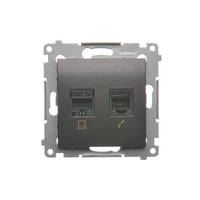 Gniazdo komputerowe RJ45 kategoria 5e + telefoniczne RJ12, (moduł), antracyt, metalizowany