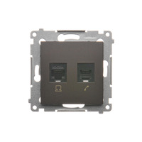 Gniazdo komputerowe RJ45 kategoria 5e + telefoniczne RJ12, (moduł), brąz mat, metalizowany