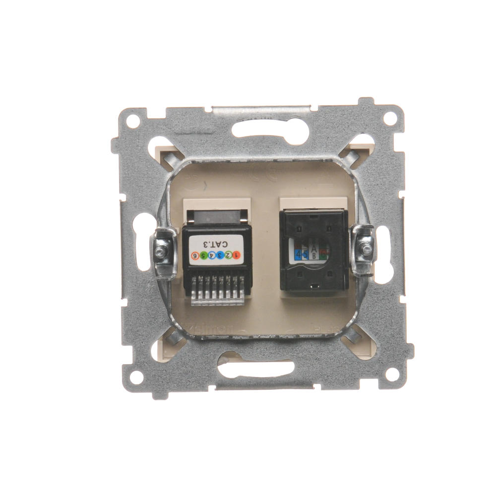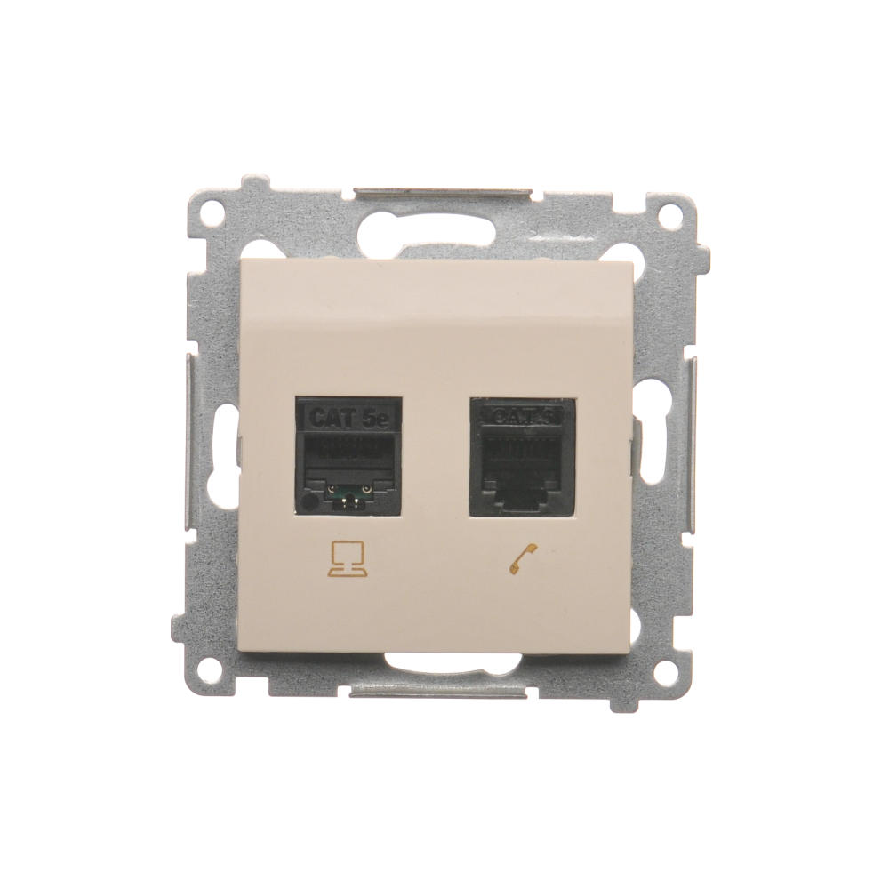 Gniazdo komputerowe RJ45 kategoria 5e + telefoniczne RJ12, (moduł), kremowy