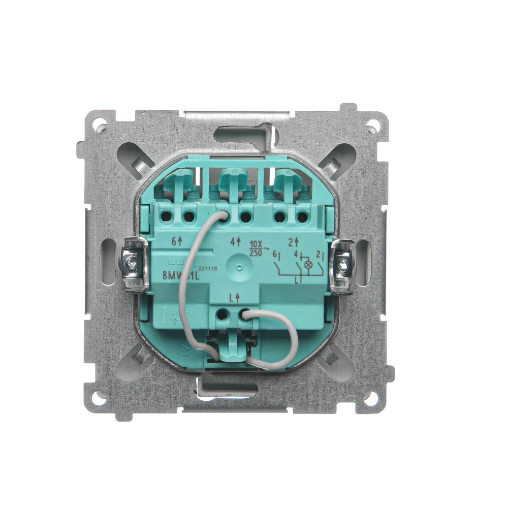 Łącznik potrójny z podświetleniem, LED nie wymienialny kolor: niebieski, (moduł), 10AX, szybkozłącza, satynowy, metalizowany