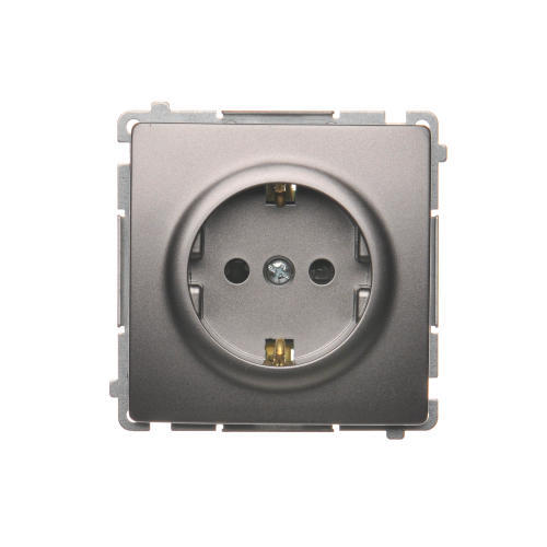 Gniazdo wtyczkowe pojedyncze z uziemieniem typu Schuko, satynowy, metalizowany, 16A