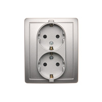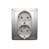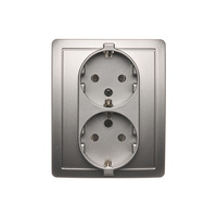 Gniazdo wtyczkowe podwójne z uziemieniem typu Schuko, srebrny mat, metalizowany, 16A