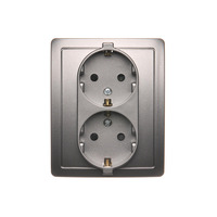Gniazdo wtyczkowe podwójne z uziemieniem typu Schuko, satynowy, metalizowany, 16A