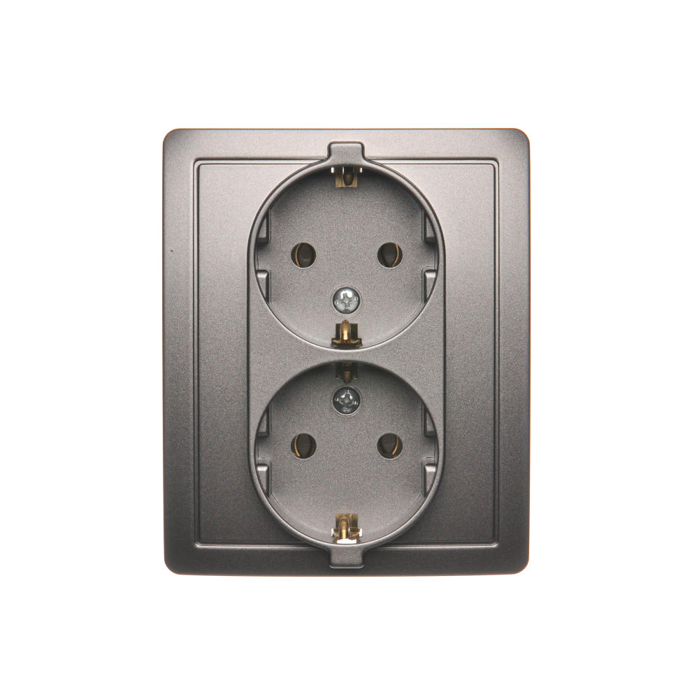Gniazdo wtyczkowe podwójne z uziemieniem typu Schuko, satynowy, metalizowany, 16A