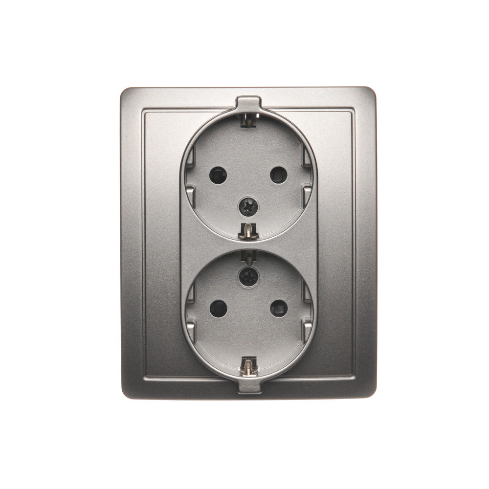 Gniazdo wtyczkowe podwójne z uziemieniem typu Schuko, satynowy, metalizowany, 16A