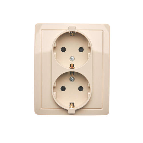 Gniazdo wtyczkowe podwójne z uziemieniem typu Schuko, beżowy, 16A