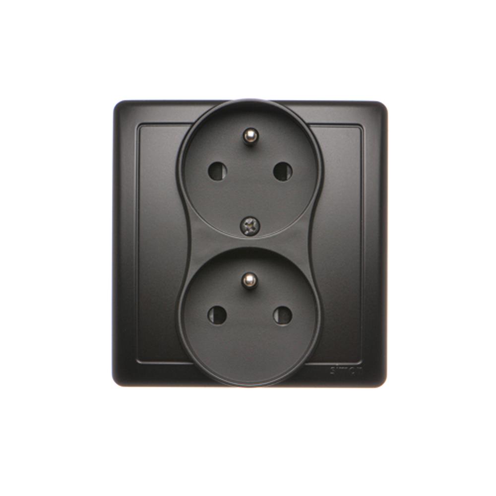 Gniazdo wtyczkowe podwójne z uziemieniem z funkcją niezmienności faz, czarny mat, 16A