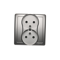 Gniazdo wtyczkowe podwójne bez uziemienia z przesłonami torów prądowych, srebrny mat, metalizowany, 16A