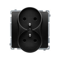 Gniazdo wtyczkowe podwójne bez uziemienia z przesłonami torów prądowych, czarny mat, 16A