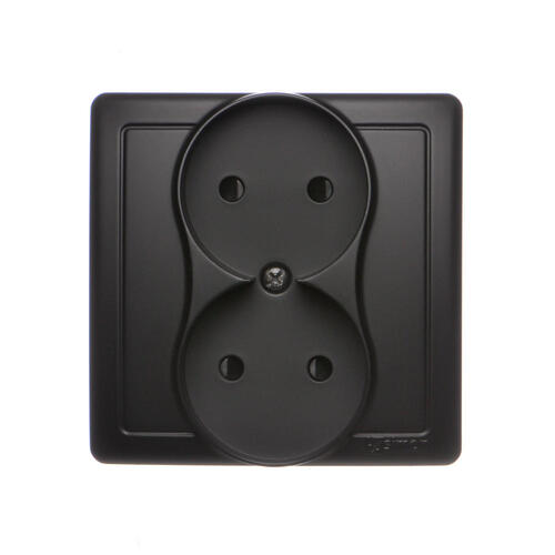 Gniazdo wtyczkowe podwójne bez uziemienia, czarny mat, 16A