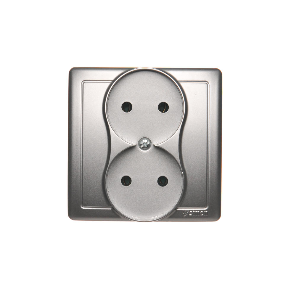 Gniazdo wtyczkowe podwójne bez uziemienia, srebrny mat, metalizowany, 16A